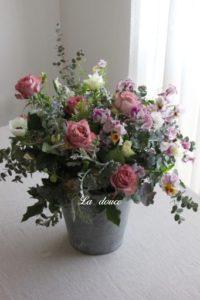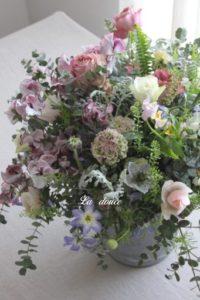 ご注文はお電話を頂戴しました。「ラドゥースさんでよろしいですか?わたくし、以前そちらからお花を頂戴したことがございまして、その時、とてもたくさんお花を頂戴したのですけれど、こちらのお花は素晴らしく素敵でとても心に残っていたものですから、今回は是非お花をお願いしたいと思いましてね…」。こんな風に仰っていただけるなんて感激でした。