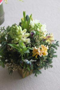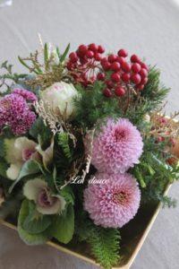 画像は以前お作りしましたお正月アレンジメントです。アレンジメントは¥4,000からお承りしています。